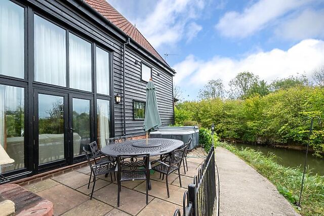 Outside, the fully enclosed patio area with tables and chairs provides wonderful views of the historic 12th-century moat. Fire up the charcoal BBQ and unwind in the private hot tub.