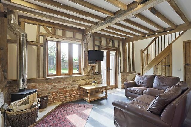 Situated on a working farm, the children will love meeting all the farm animals. This striking two-storey traditional red brick Suffolk barn retains much of its original studwork, while the attractive exposed wooden beams create a unique setting for enjoying quality time together.
