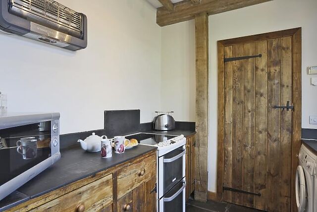 Welsh slate covers the ground floor and has underfloor heating to keep things toasty during winter stays. Step into a spacious open-plan sitting/dining/kitchen area and relax into the comfortable seating, toss a log onto the wood burner on cooler evenings and cosy up to watch your favourite shows on TV.