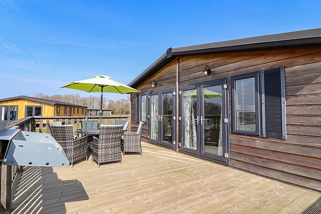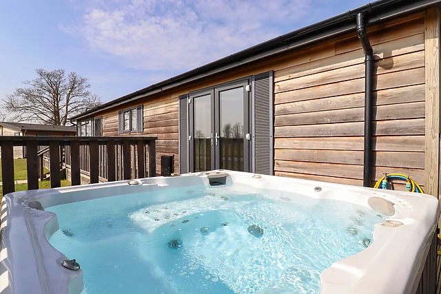 Yes, the cottage features a luxurious hot tub on the decking area, offering adjustable temperature and jet settings for a relaxing experience.