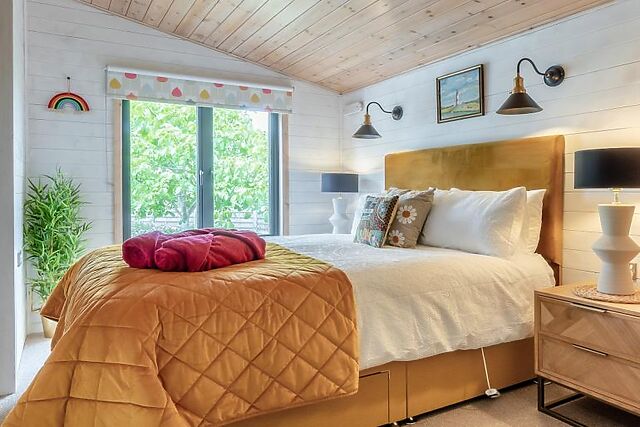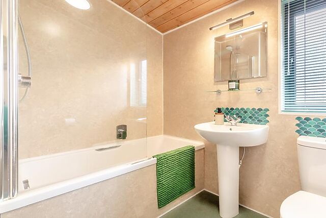 At the end of the day, you’ll find two beautiful king-size bedrooms (one is a flexible zip-and-link bed) to the rear of the lodge. A sleek family bathroom with a bath and overhead shower, and a wet room with a shower complete the layout.