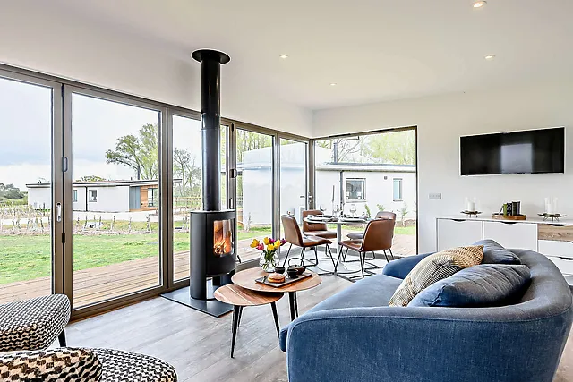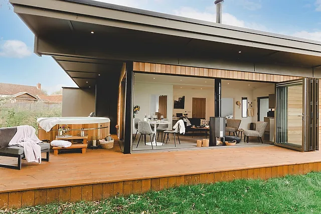 Escape to the serene Suffolk countryside with a stay at Lark Lodge, a Scandinavian-style haven that promises relaxation and comfort. This luxurious accommodation sleeps up to 4 guests, making it an ideal retreat for families or couples.