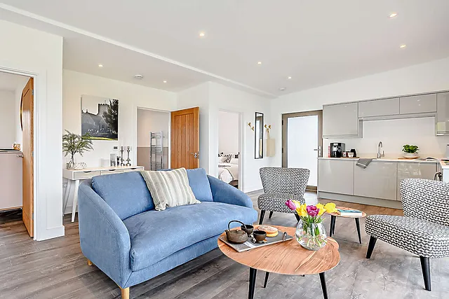 The stylish kitchen is fully fitted, allowing you to prepare meals with ease, and the wood burner adds a touch of cosiness on cooler evenings.