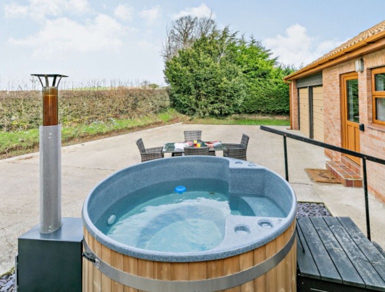 The wood-fired hot tub and the spacious interior make this a perfect place to unwind, while its proximity to walking and cycling routes adds to the appeal.