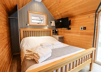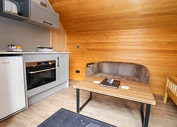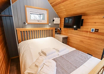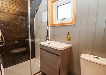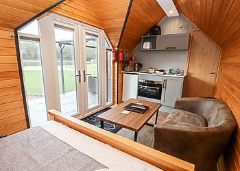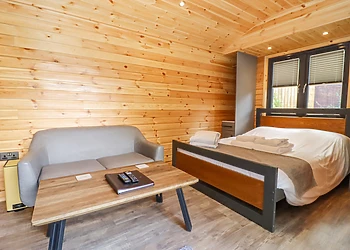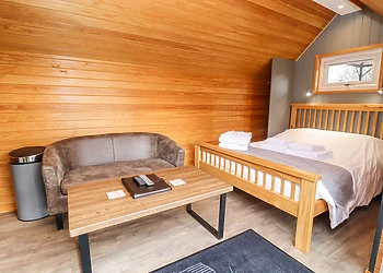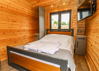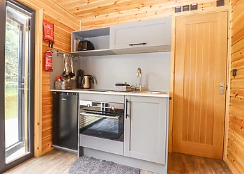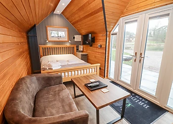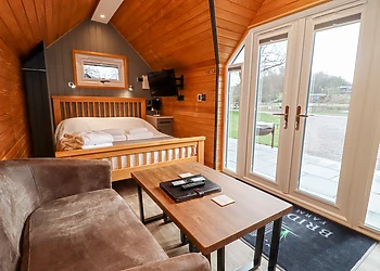 The Tunnel offers a unique stay with a stylish interior and a private hot tub overlooking the lake. The lodge is designed for a comfortable and peaceful experience, making it a great choice for a weekend retreat.