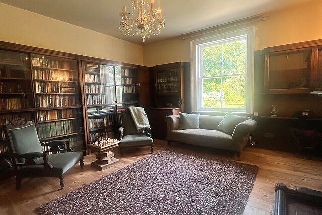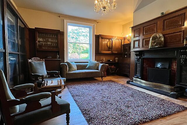separate library, adorned in warm tones and featuring another open fire, invites you to browse the shelves and lose yourself in a good book, the gentle crackle of flames providing the perfect backdrop for quiet moments. Upstairs, each of the seven bedrooms is thoughtfully arranged for restful nights, every room graced with its own chandelier.