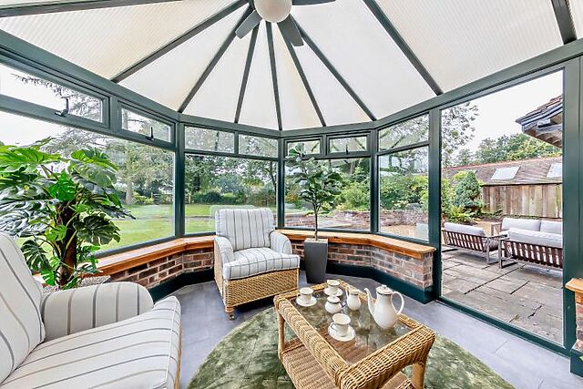 Step into the modern kitchen, fully equipped for all your culinary needs, including a coffee machine for those lazy mornings. The dining room offers ample space for family meals, while the conservatory provides stunning views of the surrounding gardens.