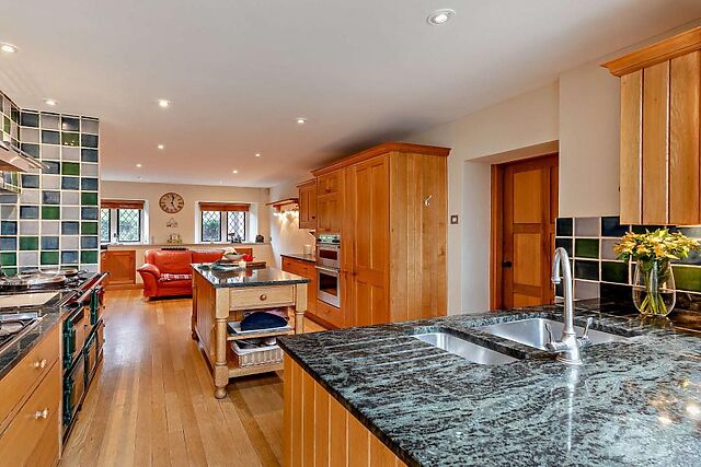 The kitchen and the adjacent dining room offer plenty of space to create and enjoy food in comfort. There are wonderful views from each of the six upstairs bedrooms - a super-king-size, a king-size, two doubles and two twins - all of which stand close to three wet rooms and a family bathroom.