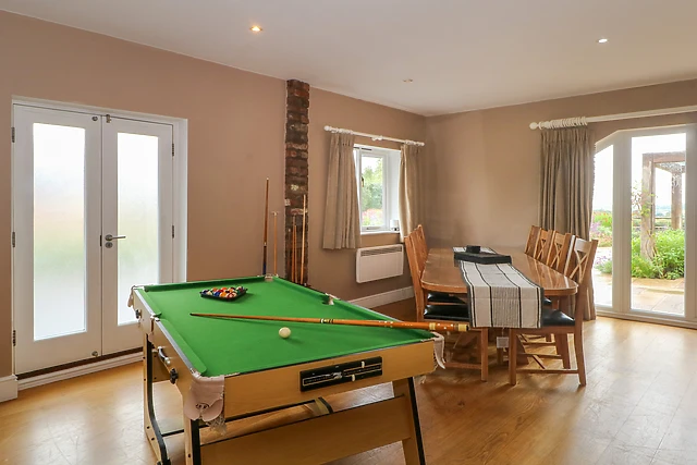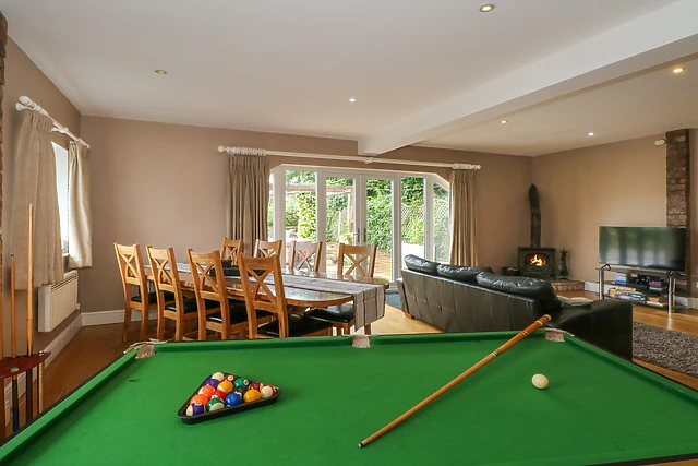 Step into the open-plan living space, a spacious area for socialising and reflecting on the day’s activities; take over the well-appointed kitchen and prepare a home-cooked meal before gathering at the dining table and toasting to a wonderful Cheshire escape. Catch up on your favourite shows whilst the woodburning stove heats the space, or enjoy a competitive evening of pool.