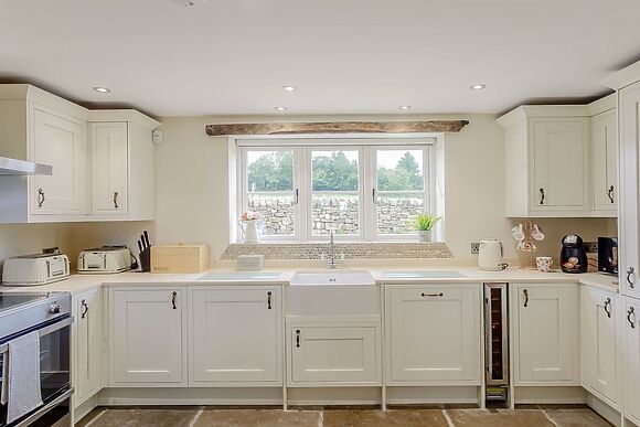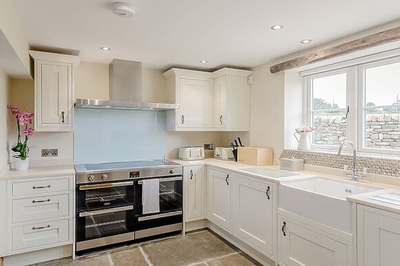 Alton Hall Cottage is a large detached 18th-century cottage and neighbouring barn in Alton, a small peaceful hamlet around 6 miles from Chesterfield. It sleeps 10 guests across 4 bedrooms and has won the Customers' Choice award five years running. Original beams, flagstone floors, exposed stone walls and a vaulted barn ceiling with original crook beam give it real character.