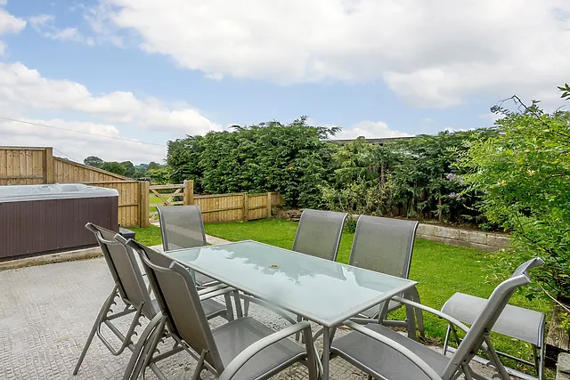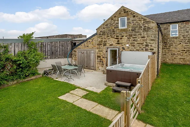 The property boasts an enclosed garden with a patio, where you can dine al fresco or indulge in the bubbling hot tub under the stars.