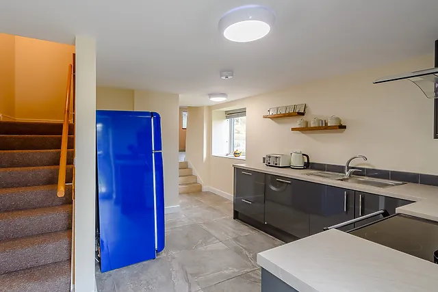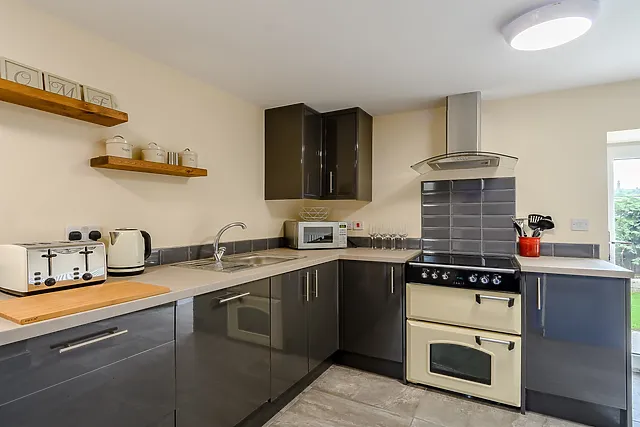 Inside, the contemporary lounge and dining area provide a cosy haven with a wood burner and Smart TV, ideal for unwinding after exploring the Derbyshire Dales. The well-equipped kitchen ensures a delightful cooking experience with stunning valley views.