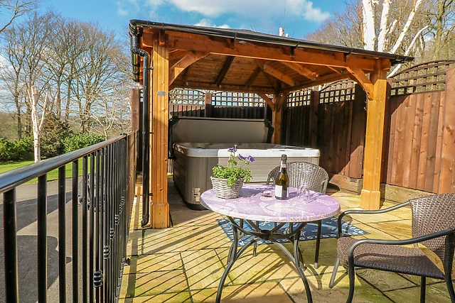 Guests will benefit from a delightful shower room, perfect for freshening up after a long day of exploring. Enjoy your morning coffee at the lovely outdoor dining table or enjoy a soak under the stars in the hot tub on the private patio.