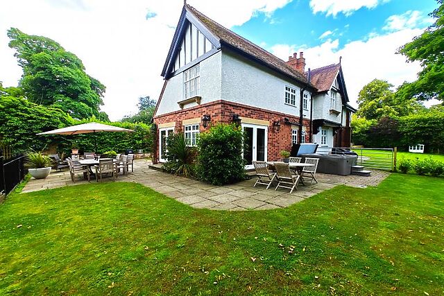 The property features five sumptuous bedrooms, including a ground-floor king-size room and four more upstairs.