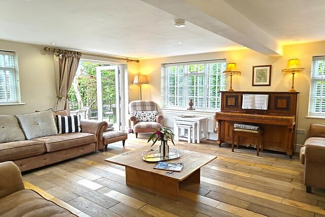 The spacious kitchen/diner is perfect for cooking up feasts, while the open-aspect lounge, complete with a traditional upright piano, is the social heart of the home. Relax in the manicured gardens or soak in the private hot tub for a truly tranquil experience.