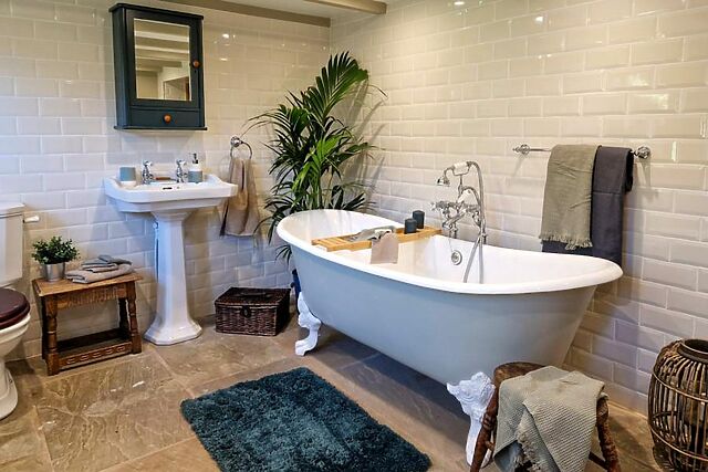Watch TV or simply gaze out over the garden and the countryside beyond. The country-style kitchen/diner, with its flagstone floor and farmhouse table, is another superb social space.