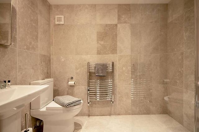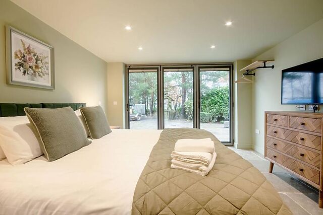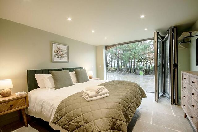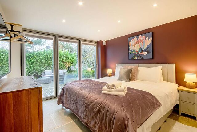 A further spacious bedroom and family bathroom on this level complete the accommodation, maintaining the same calm and comfortable atmosphere throughout. The outdoor areas are designed to complement the warmth and comfort found inside.