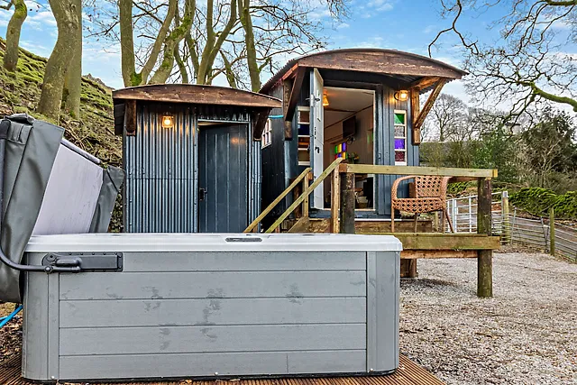 - Cosy double bed as the centrepiece and an en-suite shower room for added comfort. Outdoor space and on-site facilities - Private hot tub with broad countryside views.