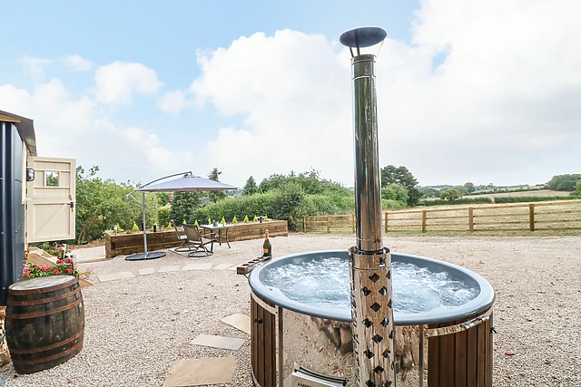 Yes, the accommodation includes a luxurious private hot tub, ideal for relaxing evenings soaking in the warmth while enjoying the picturesque countryside views.
