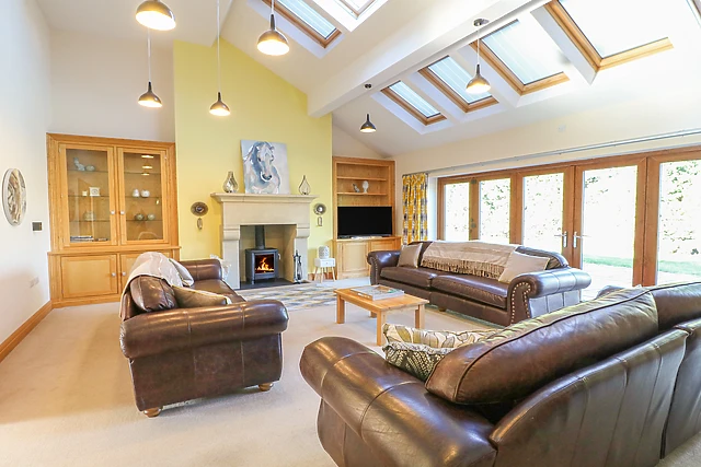 Curl up in front of the welcoming woodburning stove in the lovely, airy sitting room, the perfect spot to retire to after a day out exploring the Peak District. French doors lead outside to large, luscious, enclosed gardens with furniture and a children's play area.