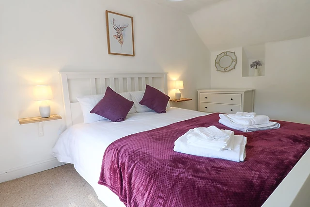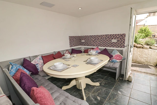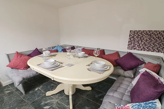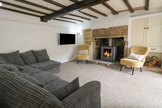 The quaint dining area enjoys beautiful views though the large kitchen windows and is the perfect place to open a bottle of fizz and chat whilst culinary delights are being whipped up in the double oven. Retire to the lounge on an evening where you can relax under exposed beams on the large corner sofa in front of your favourite film on the 4K Smart TV, as the woodburning stove crackles nearby from the original stone fireplace.