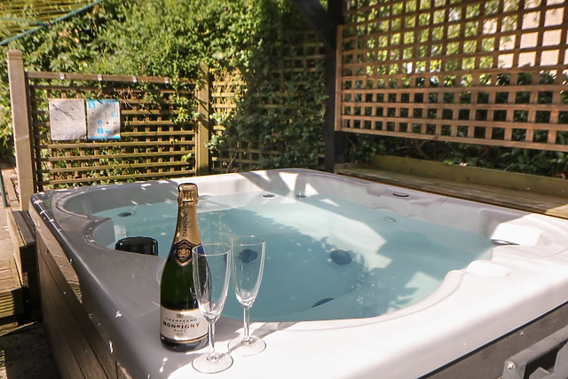 Once you have enjoyed everything the interior has to offer, wander outside where you can spend some time on the private patio, a truly beautiful setting to enjoy a bite to eat, a drink or a chill in the hot tub. All you need for a charm-filled getaway.