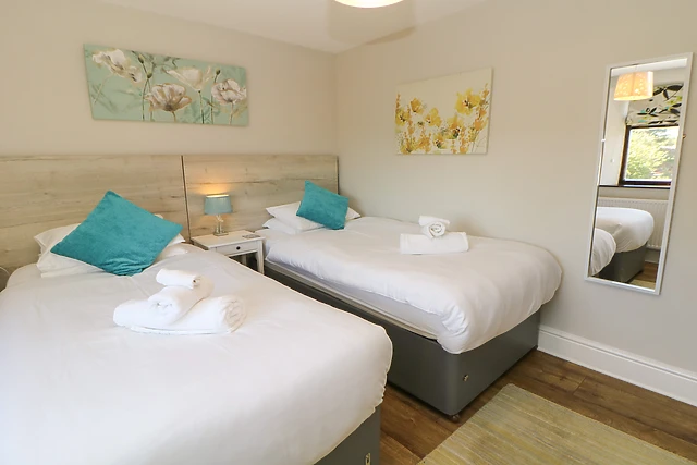 Follow the stairs up to the next floor and you will be welcomed by two fabulous bedrooms each presented with zip/link options for flexibility, and a homely feel which creates a relaxing sleeping environment. With views stretching out over the golf course, you can simply wake up to the refreshing scenery, a pleasant backdrop as you ready yourself for the adventures ahead.