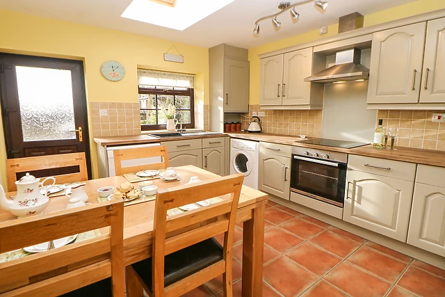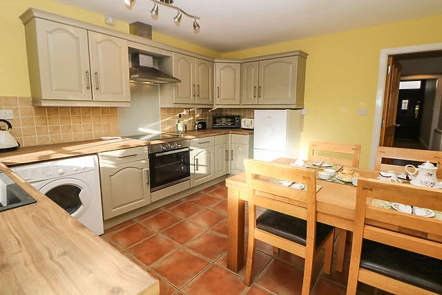 Guests can enjoy a range of amenities including a woodburning stove, a fully-equipped kitchen, and a rear garden. Dressing gown and slipper hire are available free of charge for added comfort during your stay.