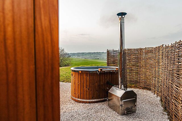 A shower room with a walk-in shower, basin and WC completes the interior, offering everything you need without any fuss. Outside, the private gravelled area gives you space to sit out and take in the fresh air, with a wood-fired hot tub ready and waiting for those evenings when you fancy something a bit more indulgent.