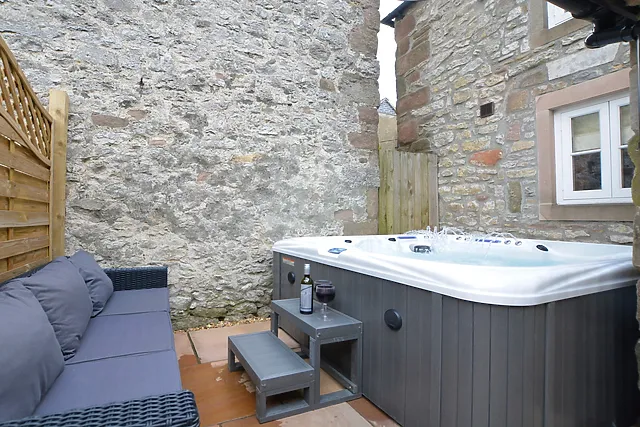 Step outside to your private courtyard and indulge in the hot tub, a perfect spot to relax after exploring the nearby countryside.