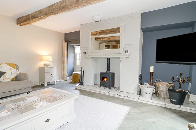 Park up in the off-road parking area and unload your bags before stepping into the delightful property, set within an idyllic rural location. Kick off your shoes and take a seat in the warm and welcoming sitting room, complete with an attractive woodburning stove, loads of comfy seating, a Smart TV, a speaker, and plenty of books and games, to keep everyone happy during their stay.