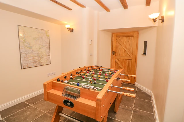 This is an ideal base for families, friends, birthday or anniversary celebrations and stag/hen parties. The first room you enter into is the games room with a pool table and table football, where many in your party can enjoy a competitive game or two during a rainy afternoon.