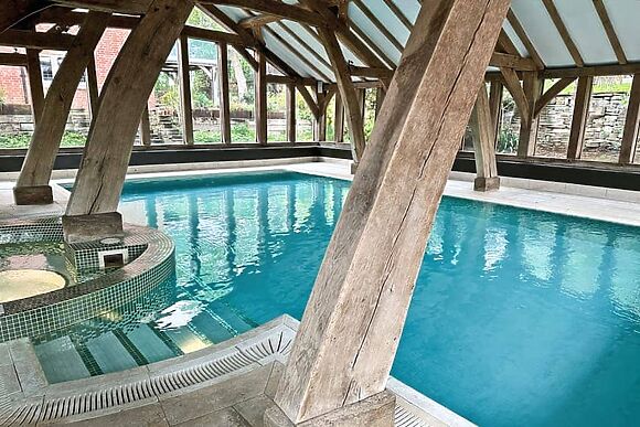 The Peacock Barn suits couples and small families equally well. With a hot tub, heated pool, gym and rural setting, it delivers a genuinely well-equipped countryside stay in central Staffordshire.