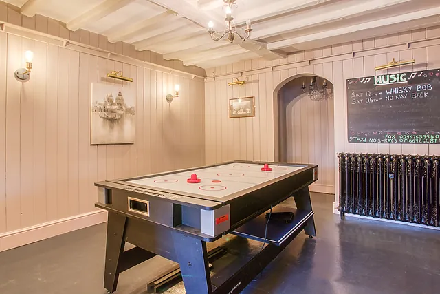 Step inside to discover a private traditional pub, a games room, and two bars, all adorned with chic furniture and décor. The communal spaces, including a lavish kitchen and an impressive dining room, provide the ideal setting for memorable meals and socialising.