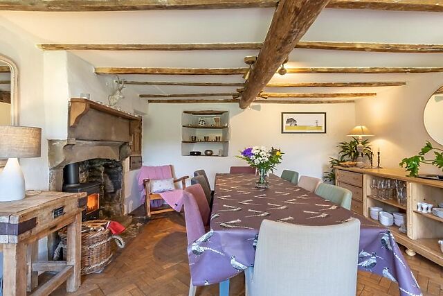 Wander through the beautiful garden to the front door of this lovely cottage. Step straight into the beautiful dining room which is a perfect space for any celebration dinner and features a wood burner providing that extra special dining experience.