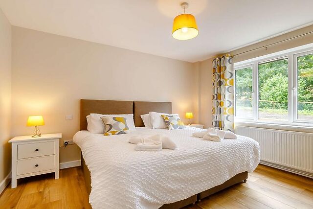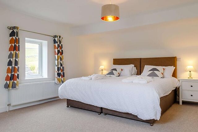 The cottage comfortably sleeps 8 guests, offering 4 super-king-size zip-and-link bedrooms that can be arranged as twins upon request, catering to various group configurations.