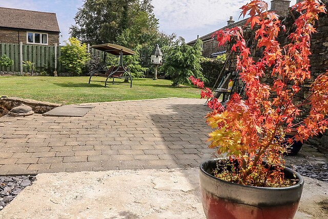 Outside, the non-enclosed front garden invites you to unwind on the patio, with seating and a lawn area for enjoying the amazing greenery of the countryside ahead of you. The enclosed rear garden is a real highlight, boasting a plush sofa and table, an outside dining table and chairs, and a rocking seat, perfect for soaking up the sun.