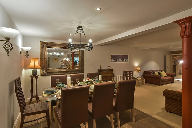 Step outside to your private lawned garden and indulge in the luxury of your own hot tub, the perfect way to unwind after exploring the Peak District. With a fully equipped kitchen and a dining area that seats eight, Yew Tree Nook is ideal for family gatherings or a group of friends seeking a stylish getaway.