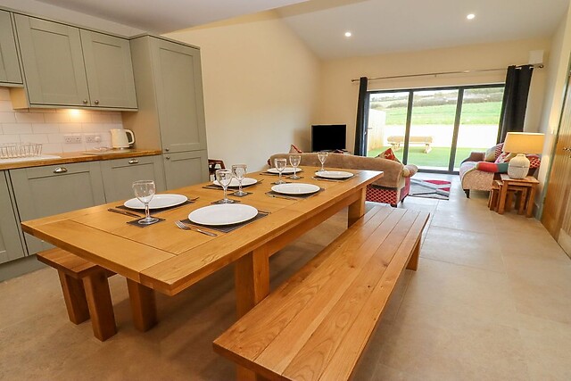 Settled on Church Farm and enjoying rural views through its floor to ceiling windows, this family friendly property is a superb base for a group of six. Park up outside and admire the unique exterior before making your way inside to the porch, where you can kick off your shoes ready for exploring the natural beauty.