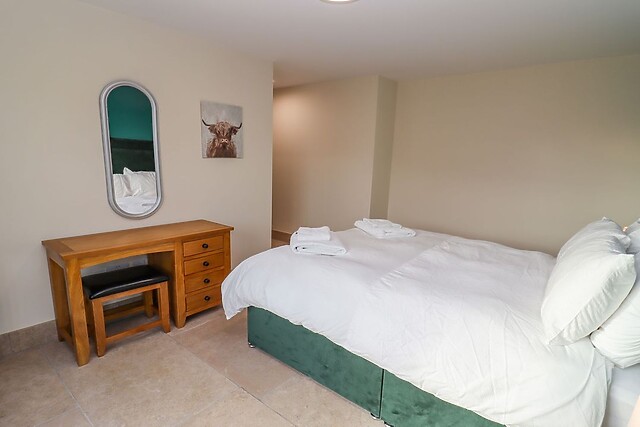 Afterwards, head out into the enclosed garden and take a dip in the bubbling hot tub till the sky grows dark. When eyes grow heavy, retire inside and opt for the super-king size on the ground-floor or venture upstairs to choose between two more super-king size bedrooms with en-suites.