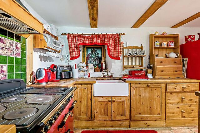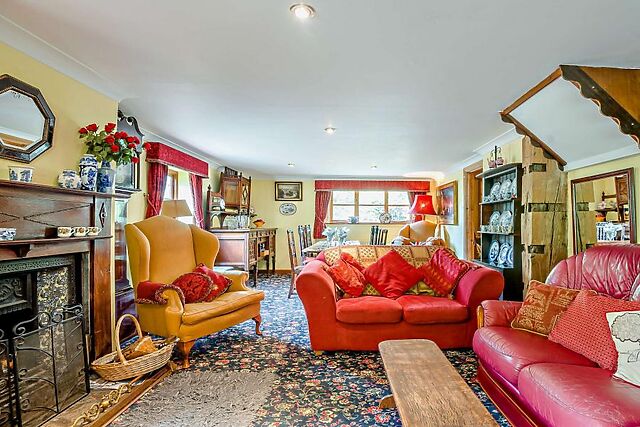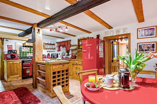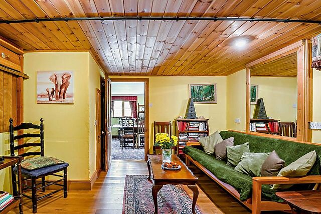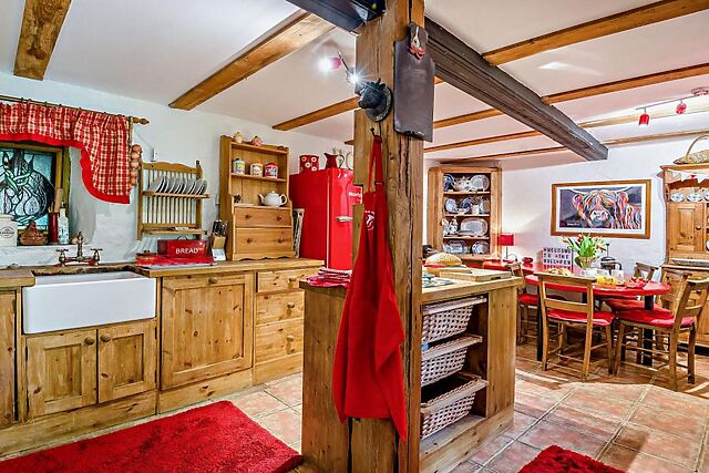 Inside, the cottage is brimming with character, featuring cosy living spaces with an open fire, well-equipped kitchen, and comfortable bedrooms.