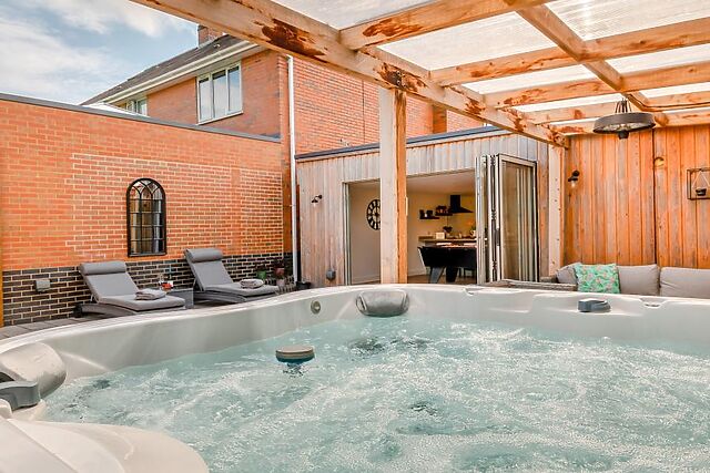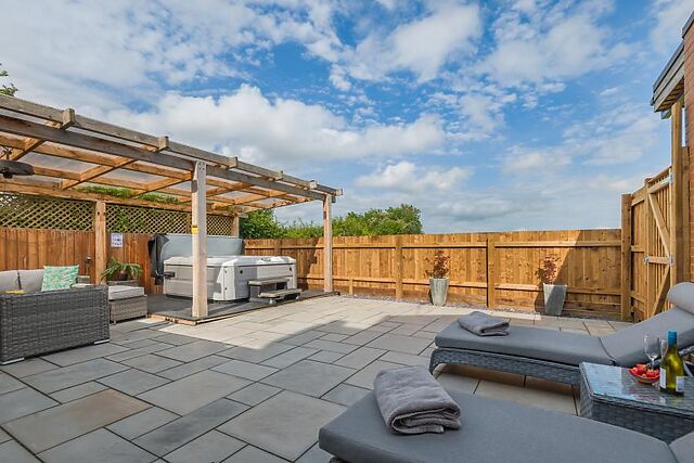 The property benefits from bi-fold doors that open onto an enclosed paved garden. Go for a splash in the hot tub or relax on the sun loungers.
