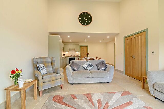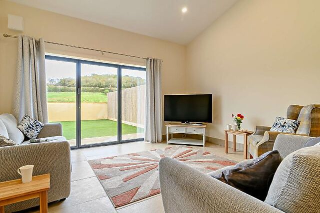 Step into the open-plan living area, where you can unwind on cosy sofas and enjoy a movie on the Smart TV.