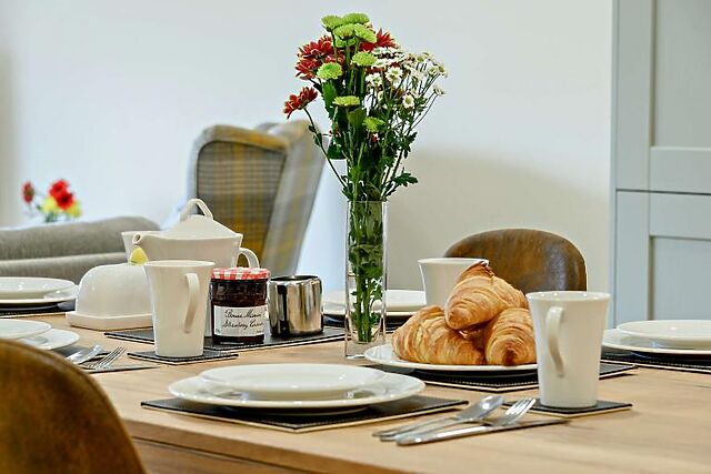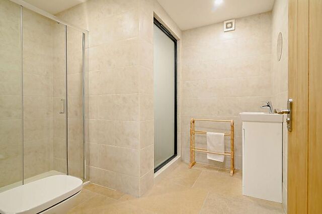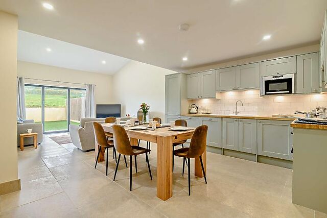 The fully equipped kitchen is ideal for preparing delicious meals, and the dining area comfortably seats everyone. The ground floor features a king-size bedroom with an en-suite shower room and patio doors leading to the enclosed garden.