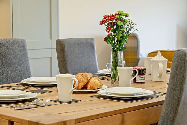 You'll find everything you need for a self-catered holiday, including a fully equipped modern kitchen, a cosy lounge with a Smart TV, and a dining area perfect for special meals.