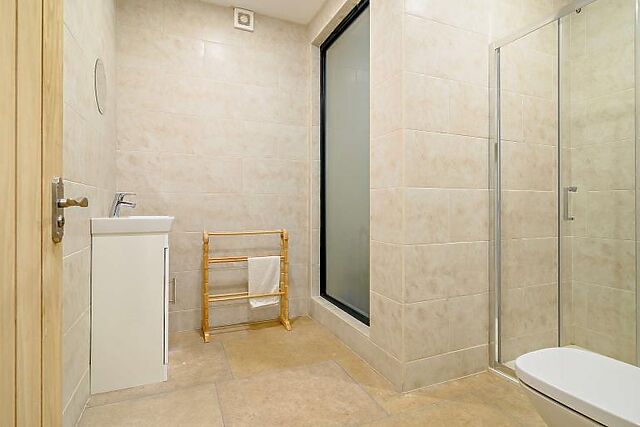 The ground floor features a king-size bedroom with an en-suite shower room, while upstairs you'll find another king-size bedroom and a twin room, along with two additional bathrooms.