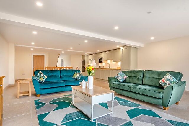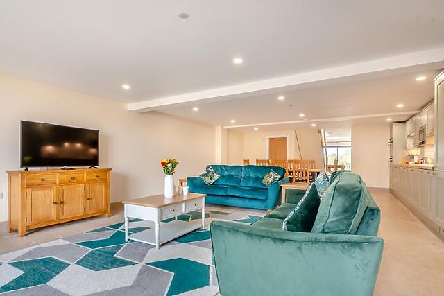 With four beautifully decorated bedrooms, including two king-size rooms (one with an en-suite), one double, and one twin, you’ll find plenty of space for everyone. The open-plan ground floor features a cosy lounge with comfortable sofas and a Smart TV, a fully equipped kitchen, and a dining table that seats eight.