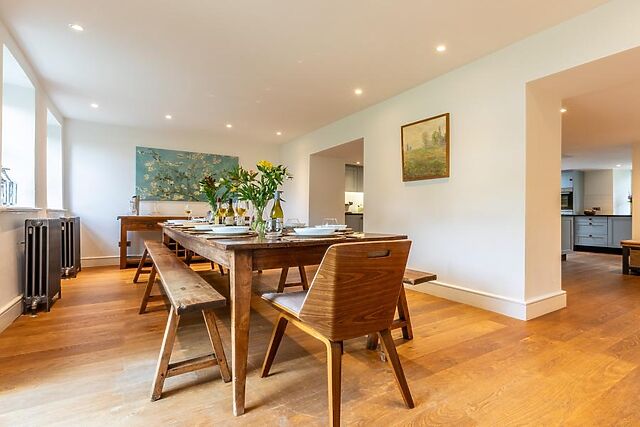 Step into the entrance hall of this divine property, slipping off your coats and shoes before you head straight into an incredibly spacious Shaker-style kitchen. This is an ideal place to enjoy cocktails and canapes while the chef of the party whips up a delicious feast to be enjoyed in the adjacent dining room.