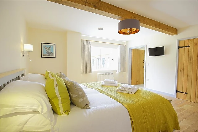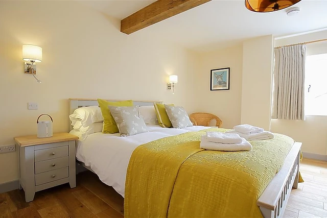 Two barns set very close to each other, not connected but only a few paces apart, each fully equipped to a high and exacting standard, yet able to easily accommodate a full quota of eight for meals and for fun! The larger of the two barns has three bedrooms and three bathrooms, a vast living area (with the large dining table), while the smaller, cuter barn has a double bedroom, bathroom (plus kitchen etc) as well as its own hot tub.