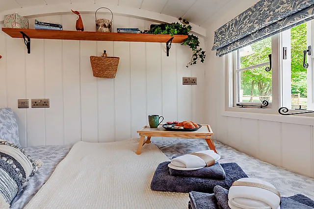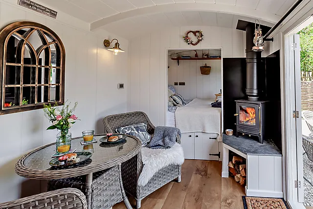 Escape to the enchanting Hut Eliza, nestled within the Forest of Dean, Gloucestershire, for a serene cottage break. This beautifully finished shepherd's hut is a haven for couples seeking a tranquil retreat from the everyday.
